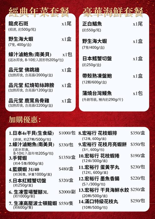 品鮮漁舖嚴選頂級食材推出二款超值組合(約8~10人份) 套餐